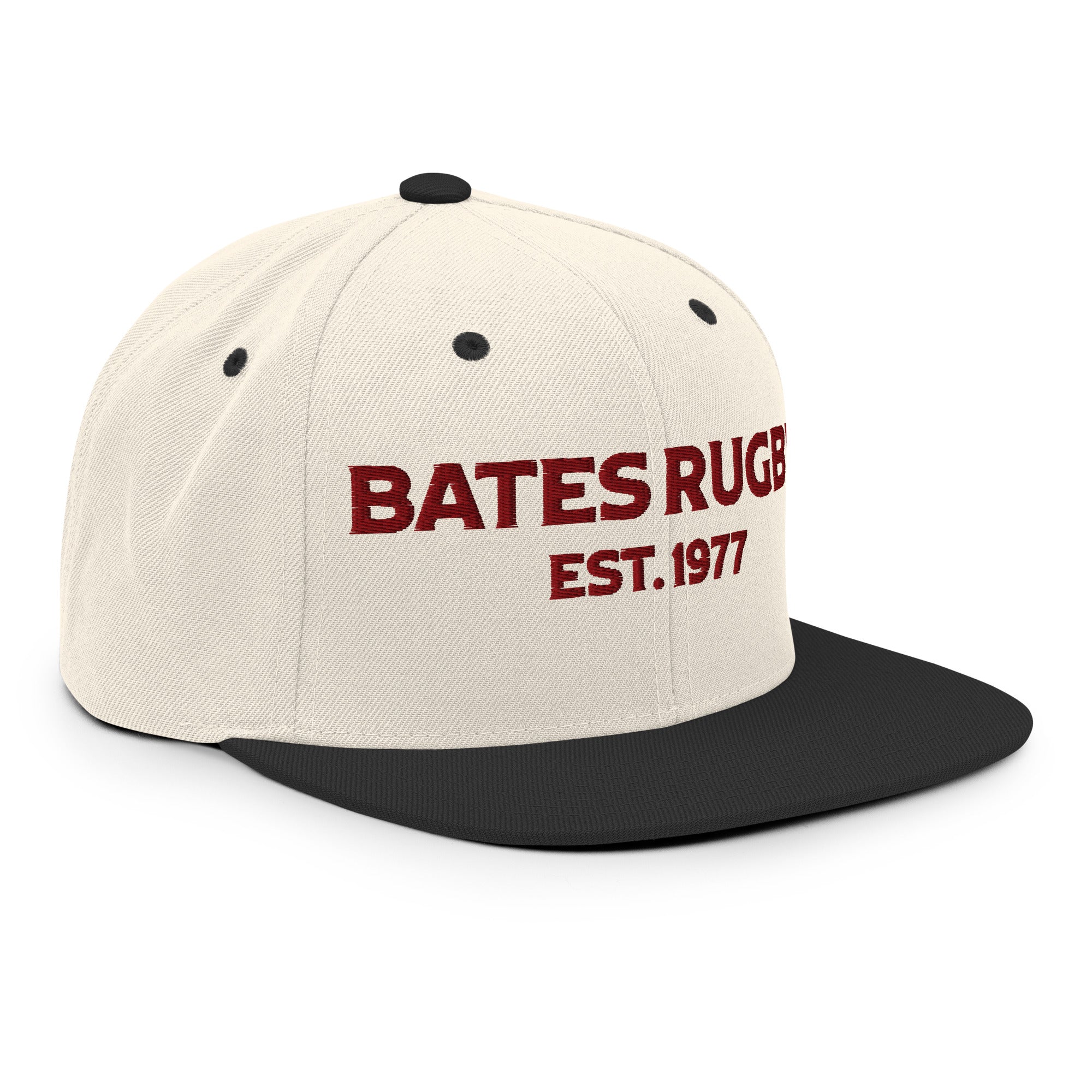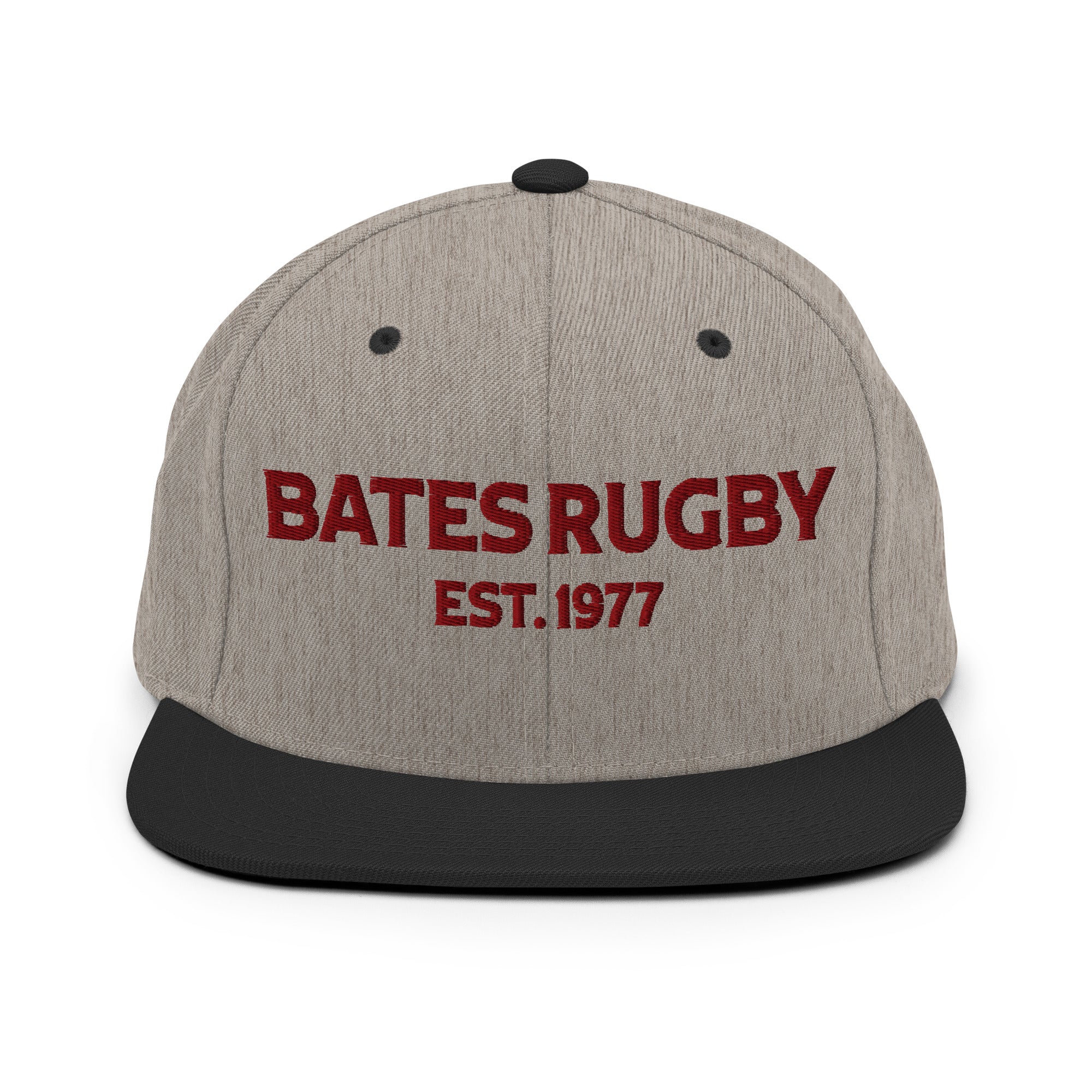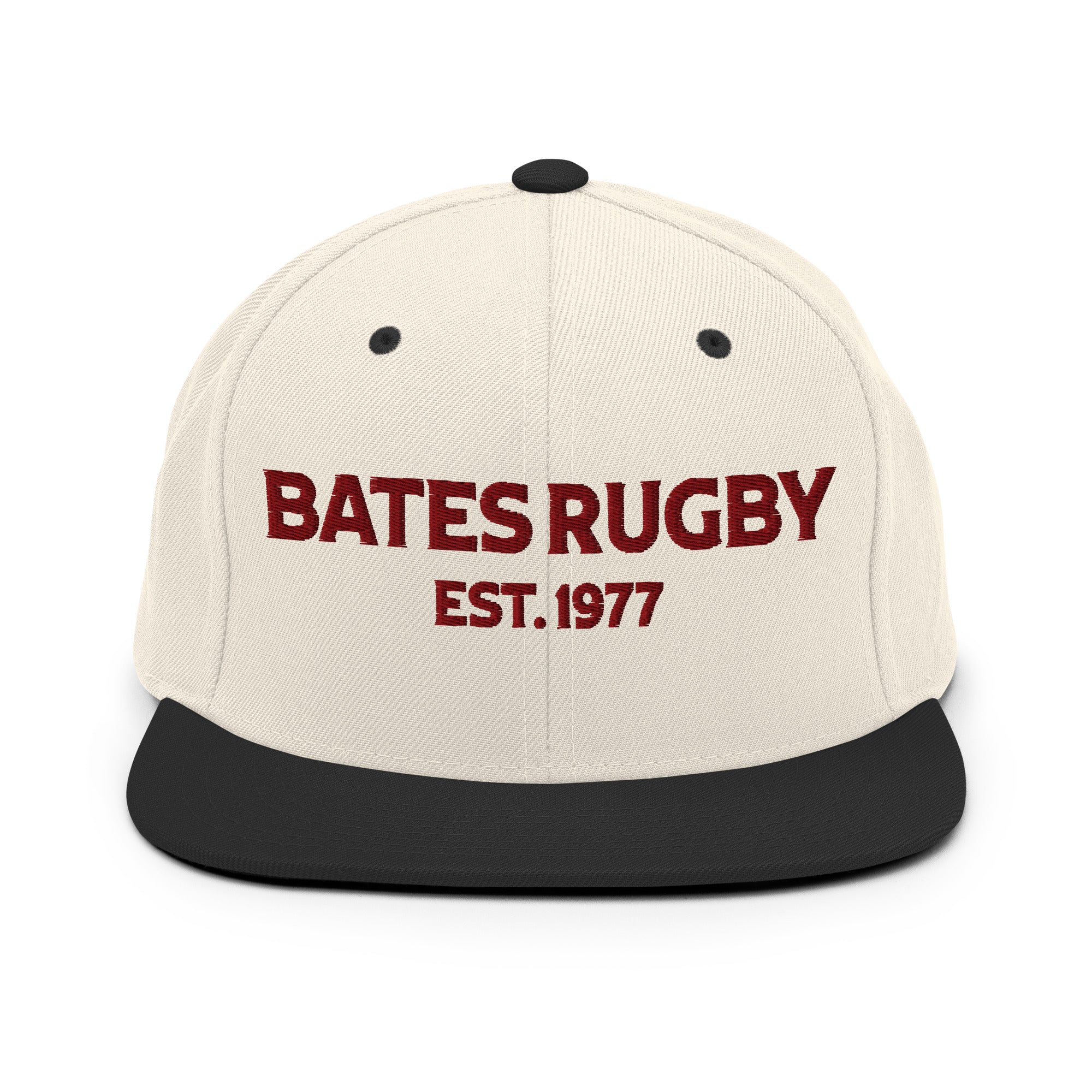 Snag this premium flat-visor Snapback Hat, customized for Bates College Rugby Football Club. Made from a premium wool blend, this classic style cap features a traditional structured fit, adjustable snap closure, and a green undervisor for a cool hidden accent.