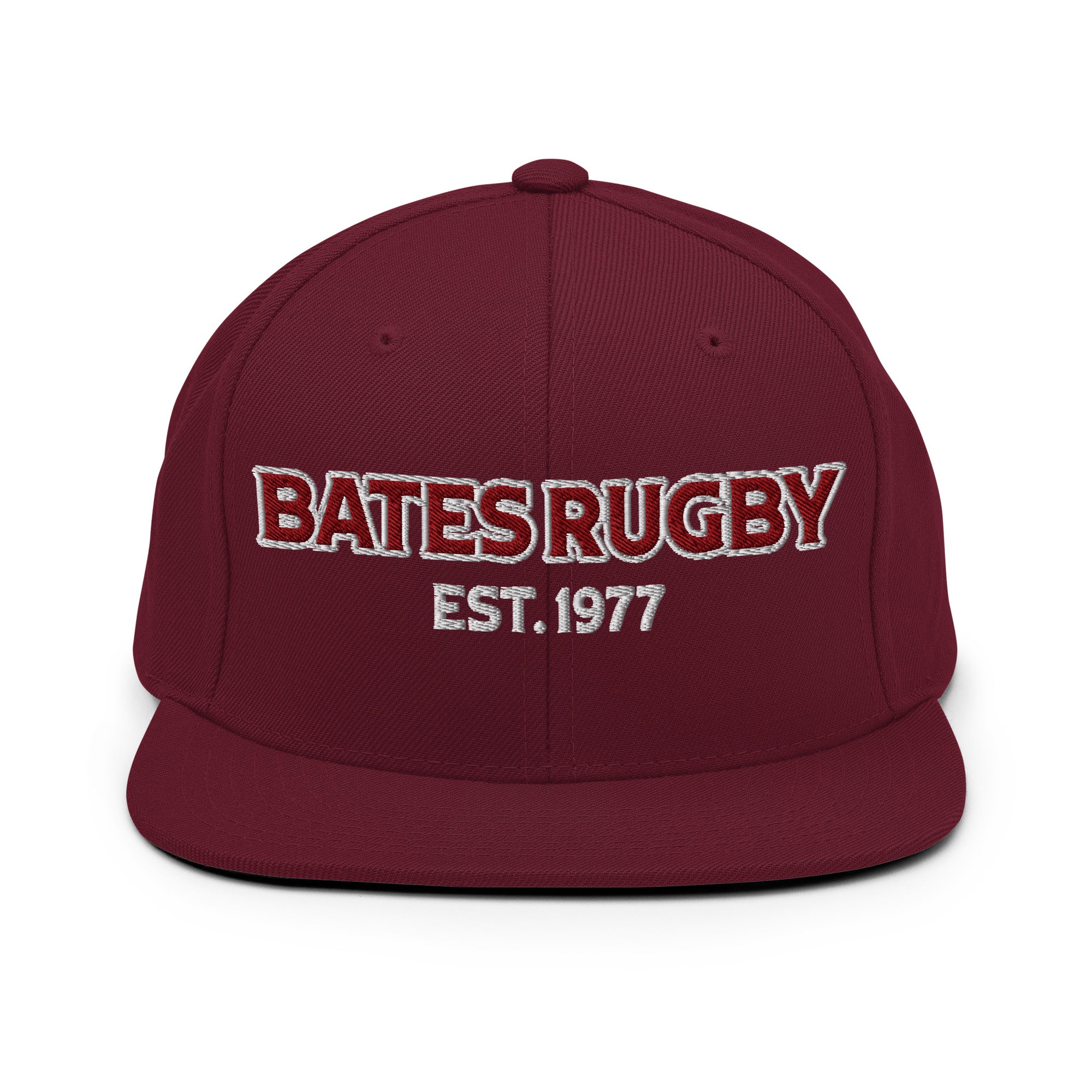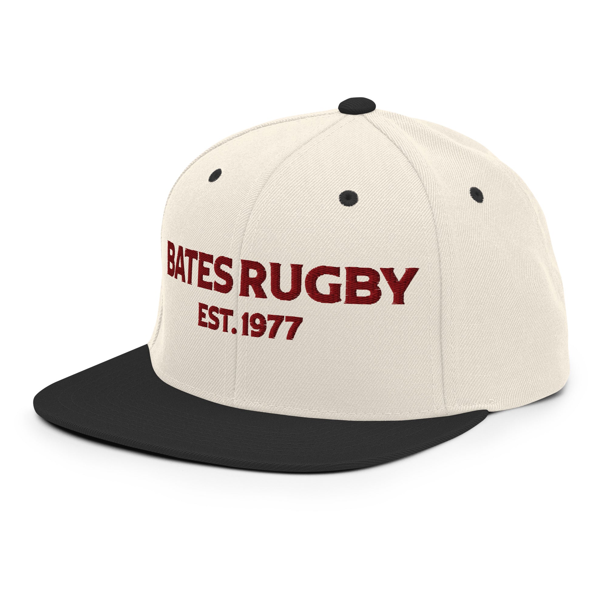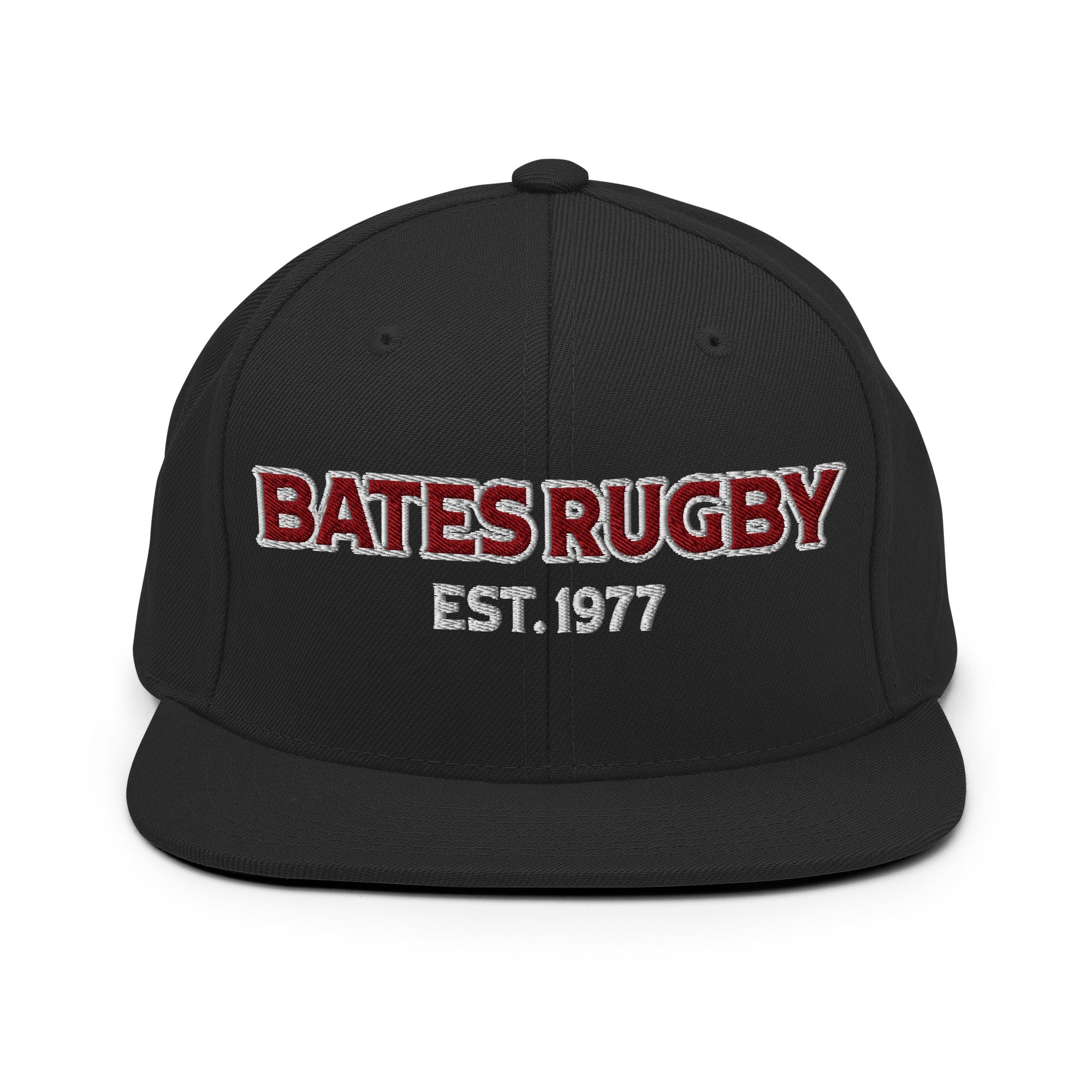 Snag this premium flat-visor Snapback Hat, customized for Bates College Rugby Football Club. Made from a premium wool blend, this classic style cap features a traditional structured fit, adjustable snap closure, and a green undervisor for a cool hidden accent.