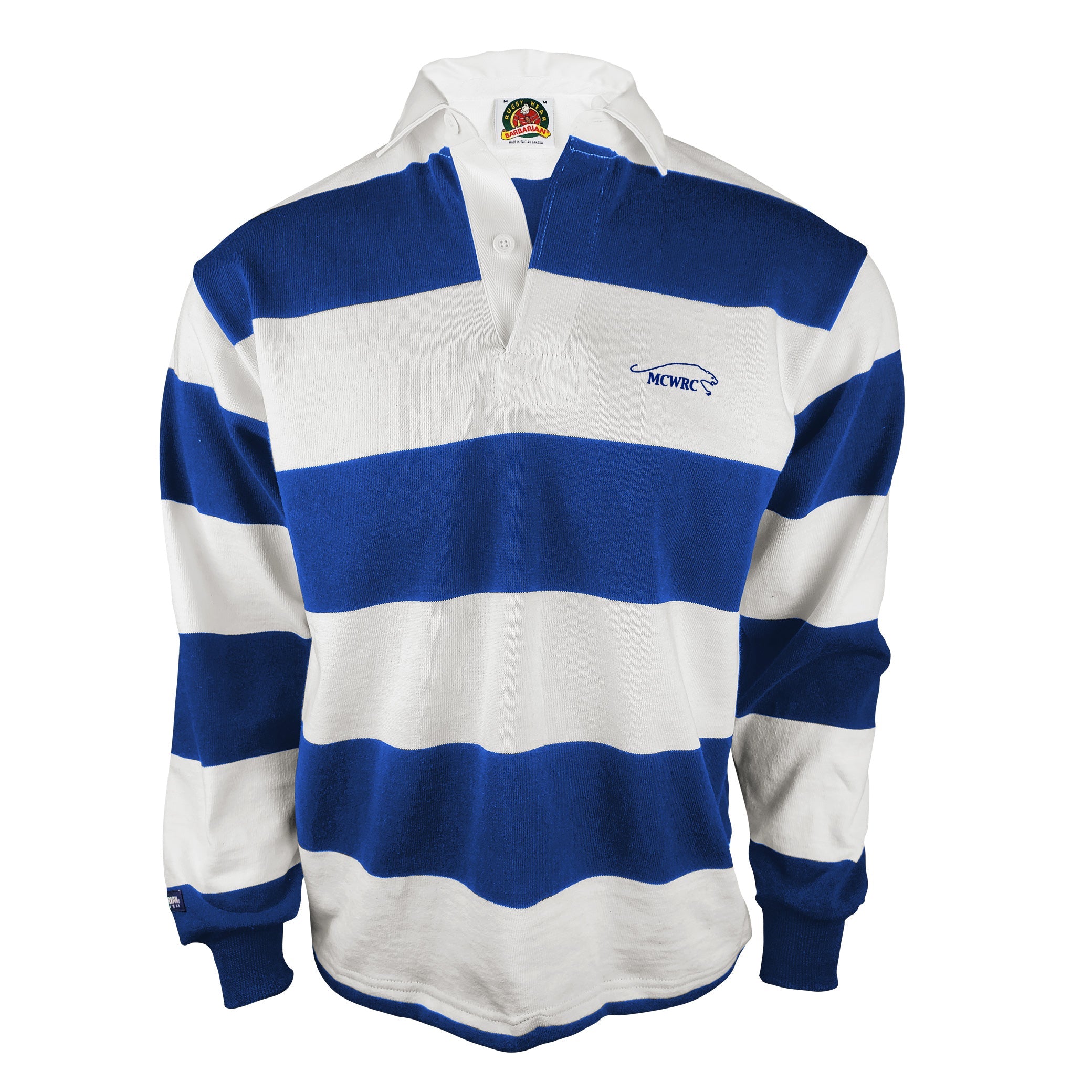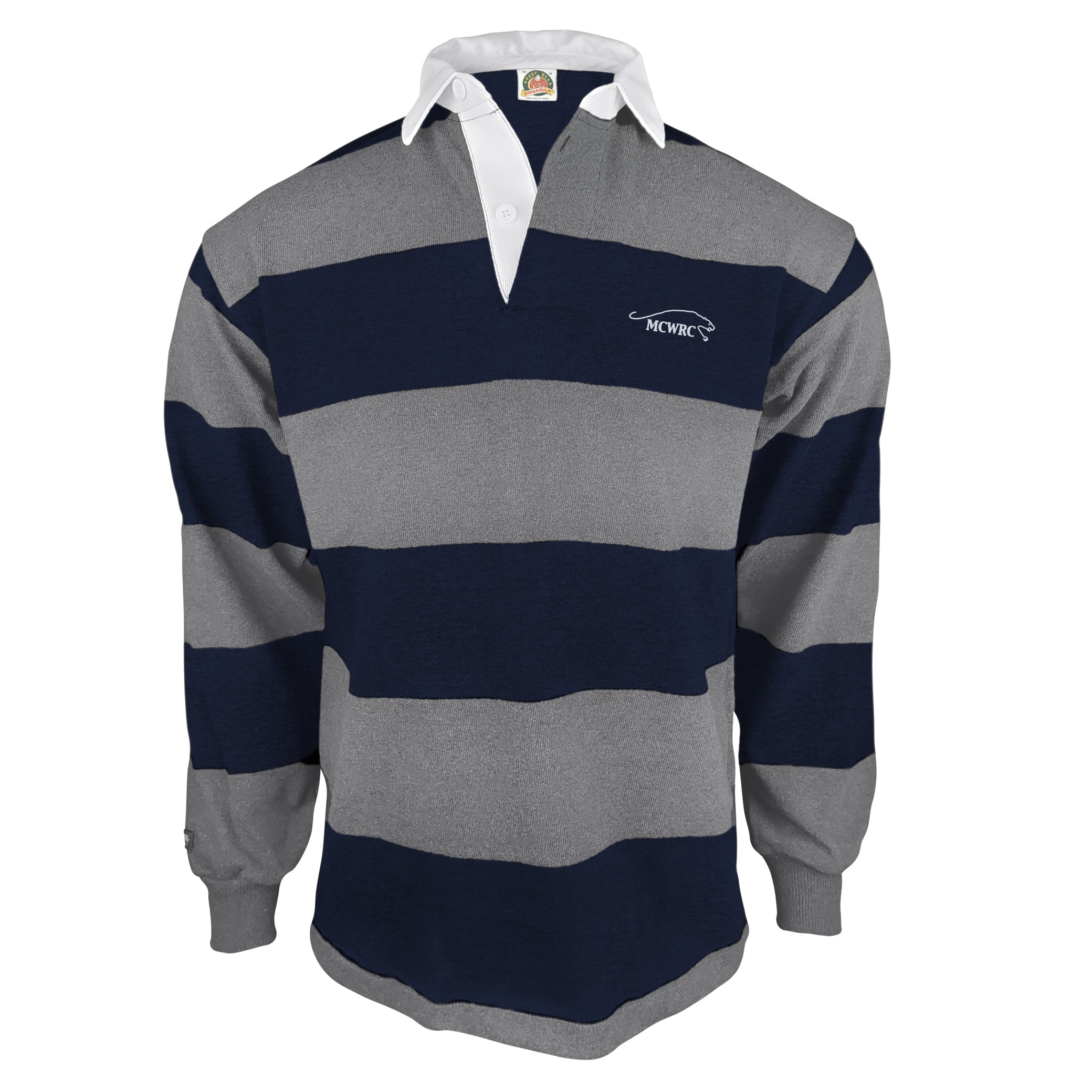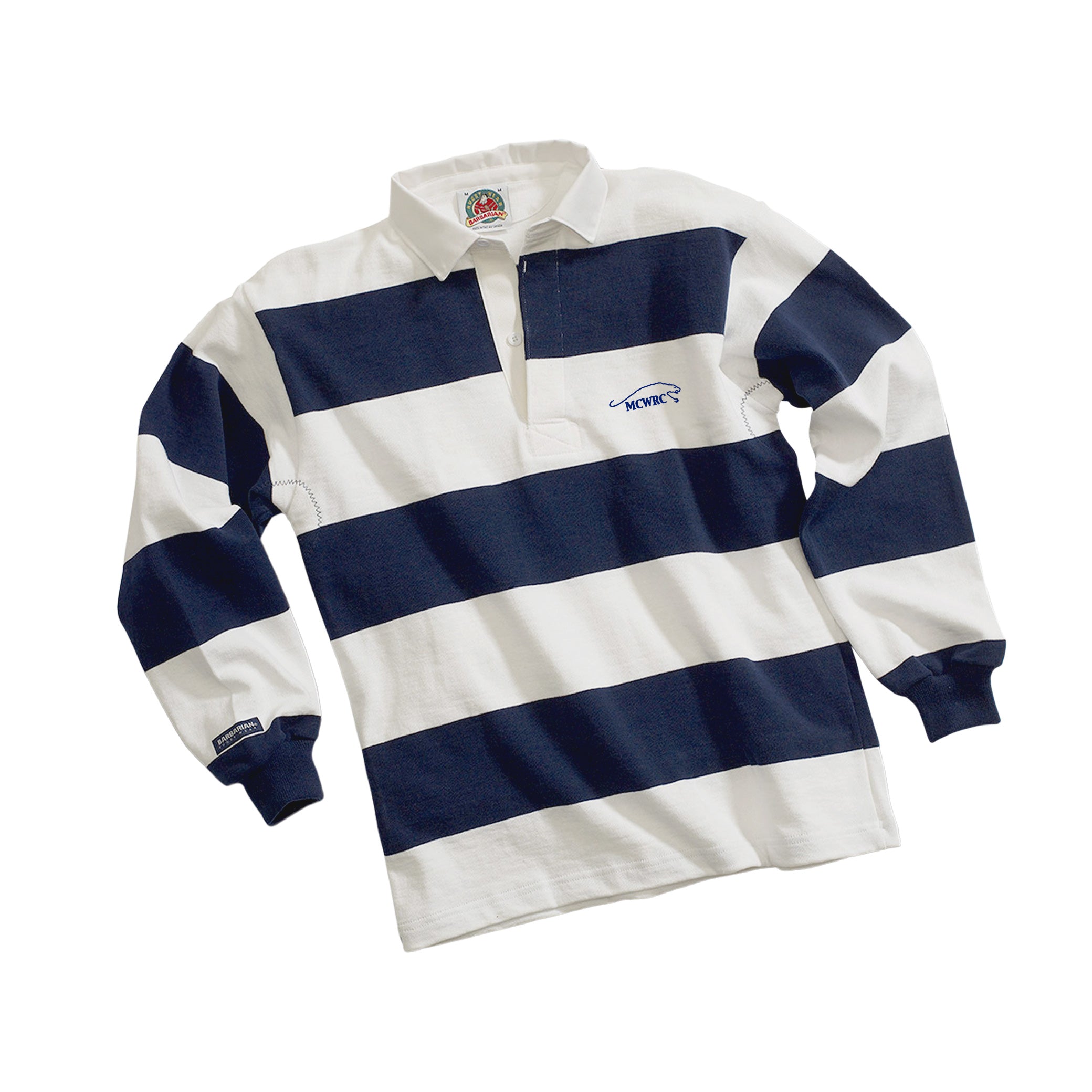 Traditional 4-inch stripe rugby jersey, customized for Middlebury College Women's Rugby Club. This striped shirt is made of the finest quality 12 oz knit cotton and made to authentic game-day specifications by Barbarian.