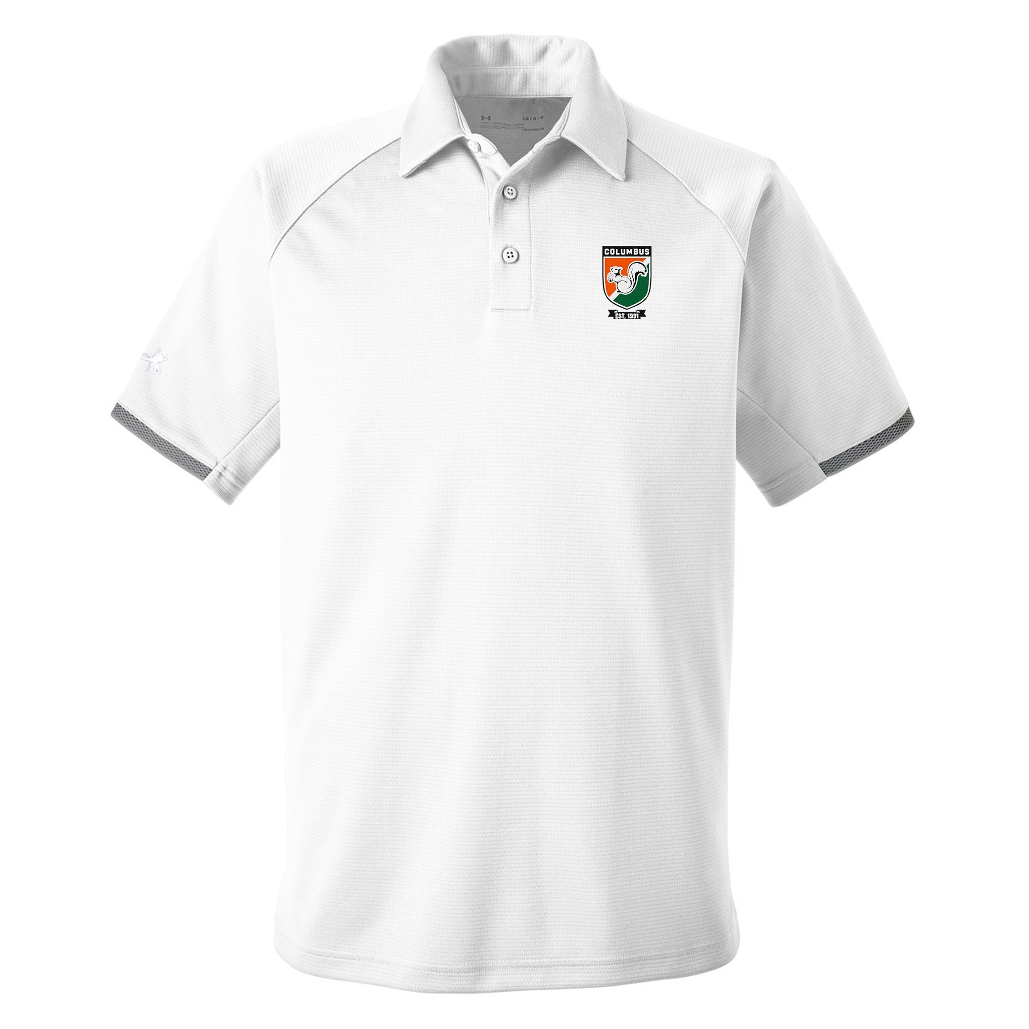 Under Armour Rival Polo, customized for Columbus Women's Rugby Club. A performance polo shirt designed for coaching, travel, and business-casual rugby events.
