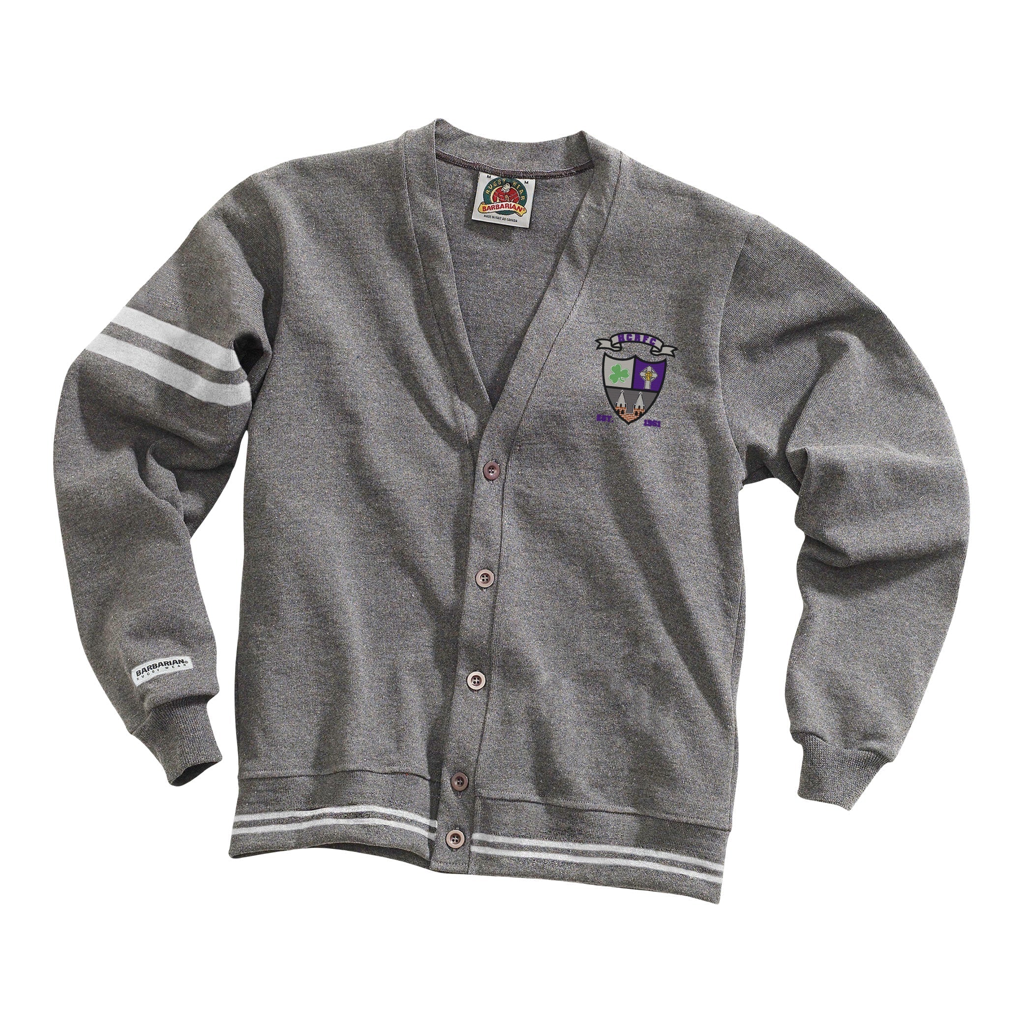 Traditional 4-inch stripe rugby jersey, customized for Holy Cross Rugby Football Club. This striped shirt is made of the finest quality 12 oz knit cotton and made to authentic game-day specifications by Barbarian.