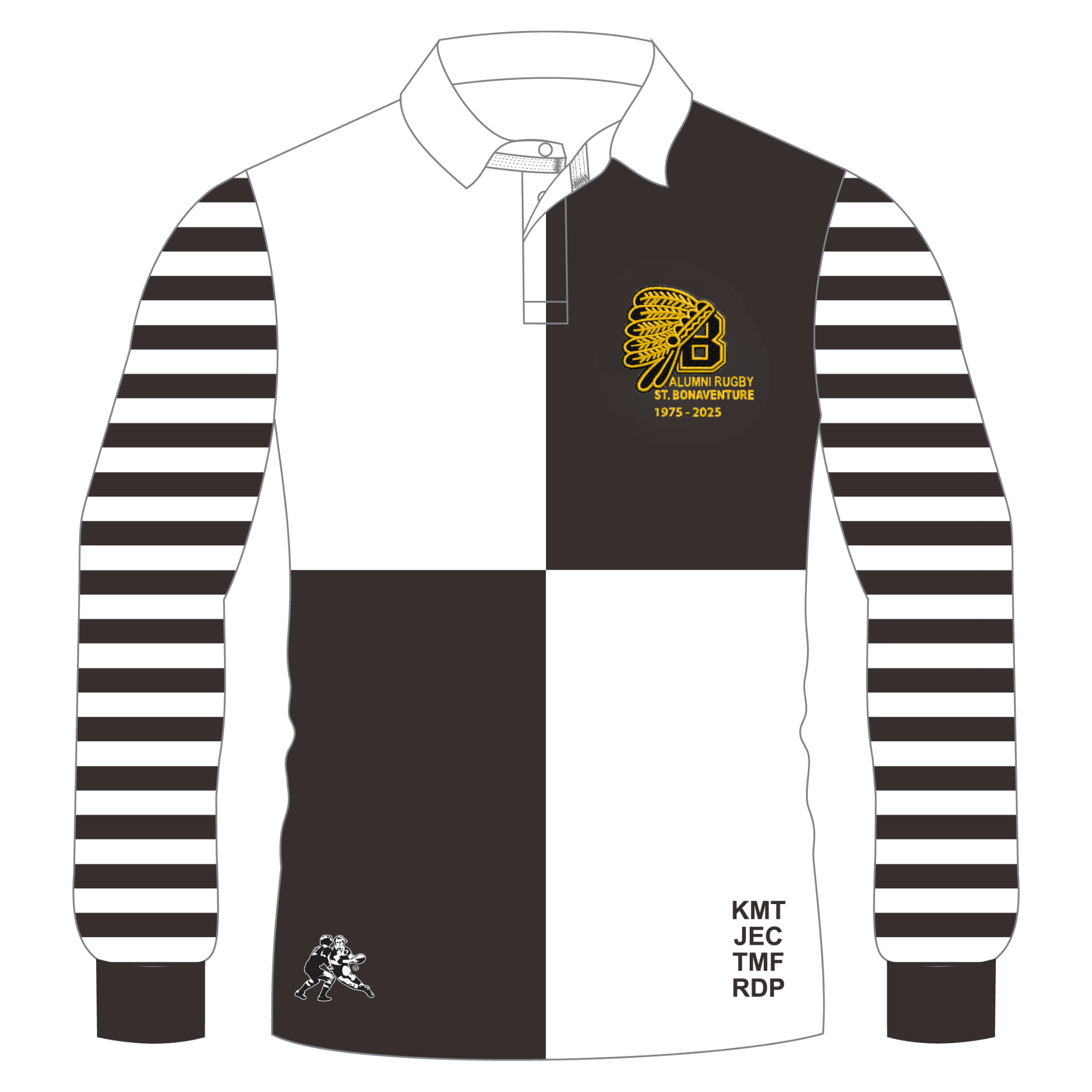 Own a custom designed St. Bonaventure Alumni vintage-style 50th Anniversary rugby shirt - available for pre-order for a limited time only!