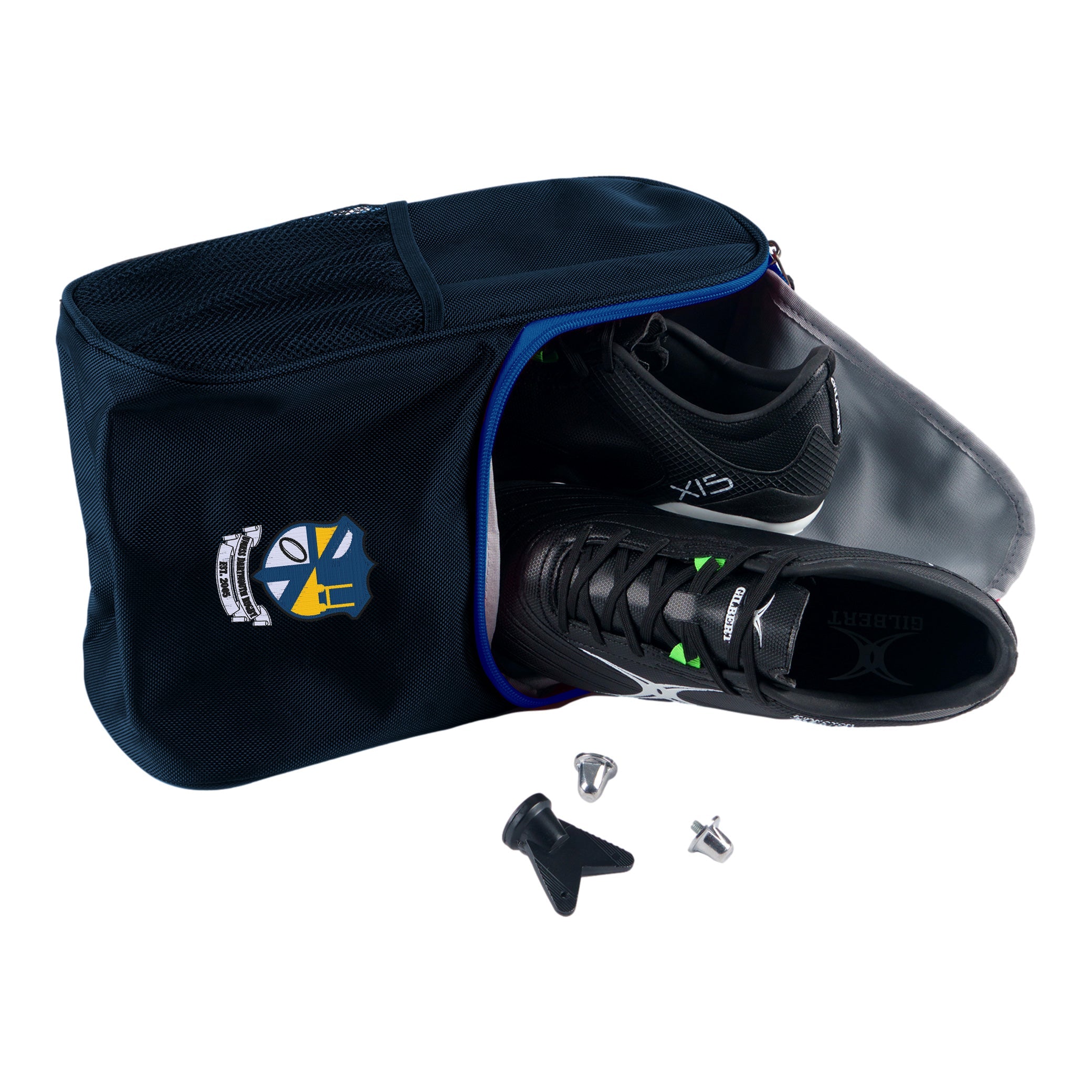 The Gilbert Club Boot Bag V4, customized for UMass Dartmouth Rugby Club. Designed to simplify the transportation of rugby boots and essential accessories to and from games or training sessions, this bag is a game-changer. Combining convenience, functionality, and a durable build, this boot bag elevates your kit to a whole new level of organized efficiency.