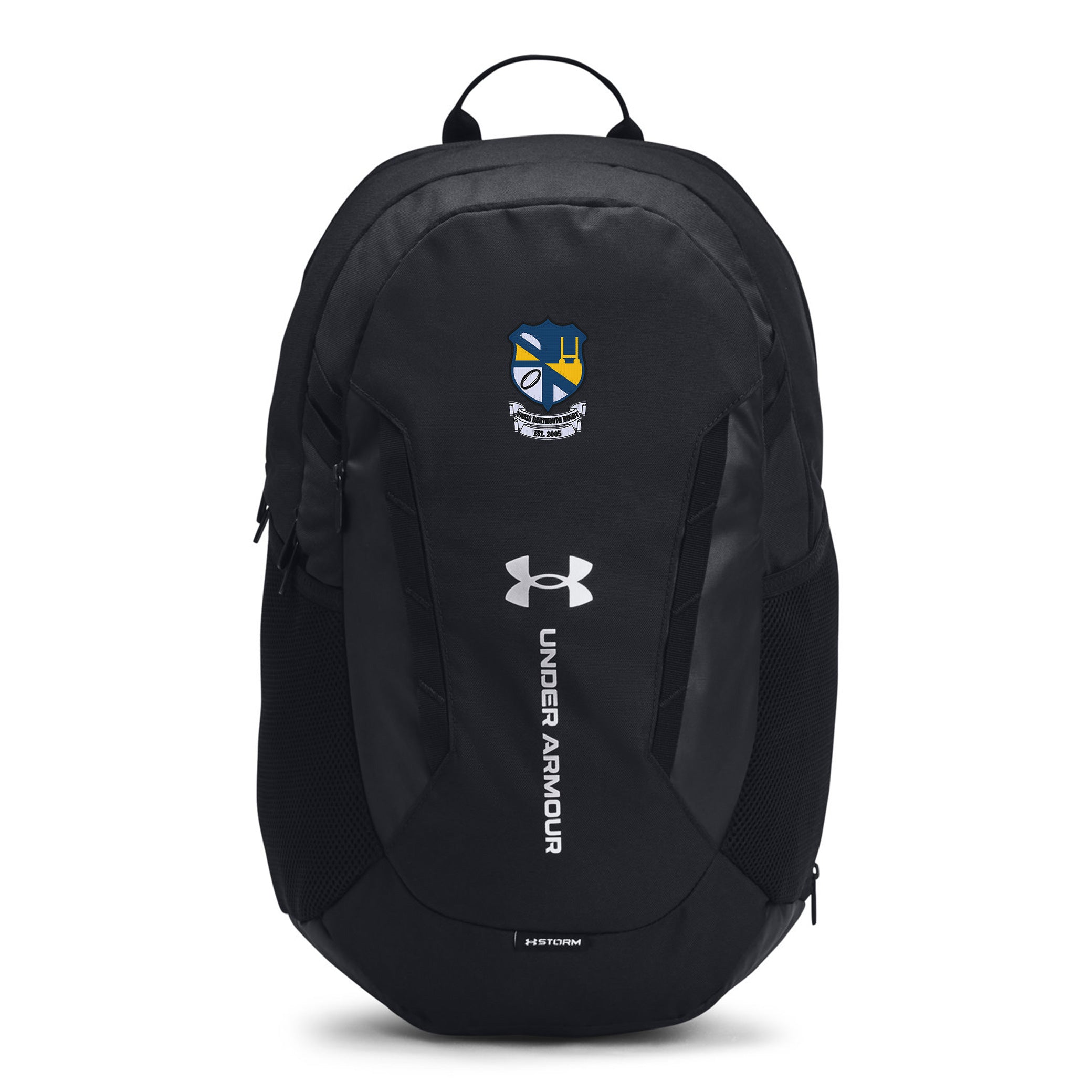 Under Armour Hustle 6.0 Backpack, customized for UMass Dartmouth Rugby Club. This perfect sized backpack can easily fit your practice gear, laptop, water bottles, and accessories with convenient storage options to keep everything tidy.