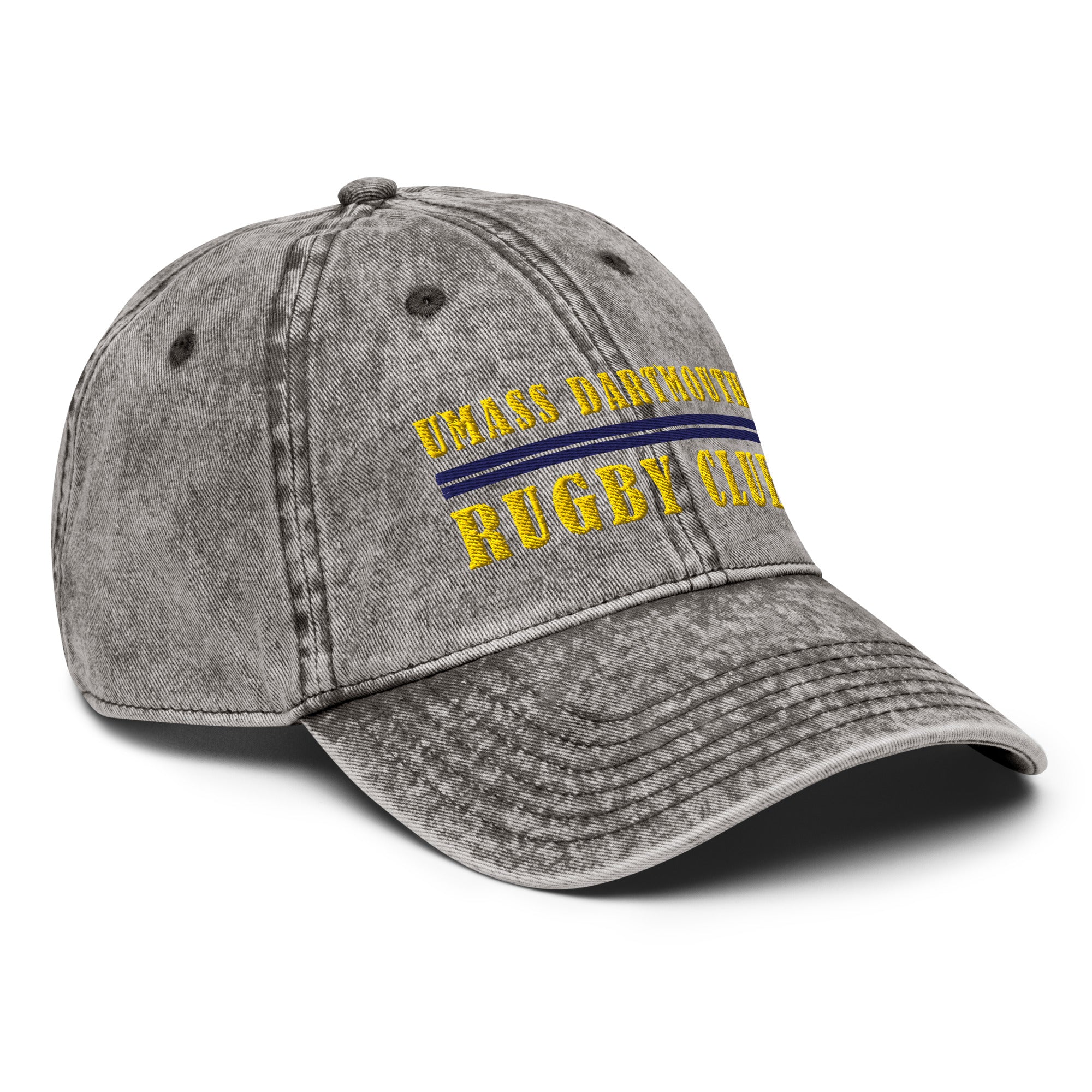 Rock that effortlessly cool worn-in look with this low-profile, washed out vintage twill cap, customized for UMass Dartmouth Rugby Club.