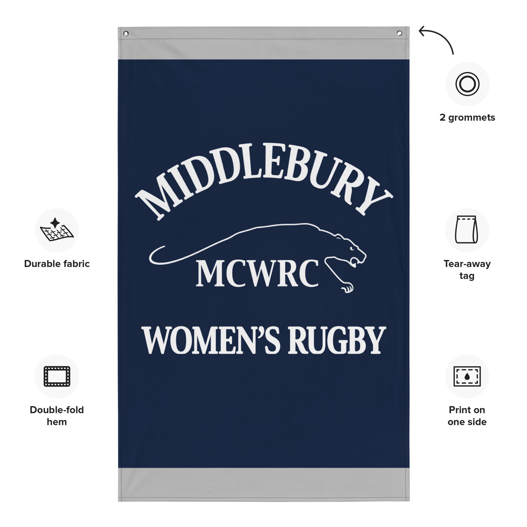 Upgrade your space with this custom designed Middlebury College Women's Rugby Club wall flag. Whether you're decking out a home gym, spicing up a clubhouse, or adding some flair to your favorite hangout, this flag is perfect for showing off your team's colors.